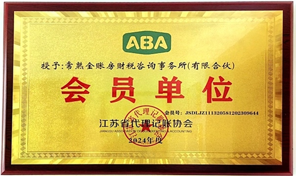 江苏省代理记账协会会员单位铭牌---常熟金账房财税
